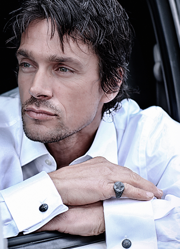 Our model is photographed by Shane Russeck wearing our Star Cufflinks in Black Silver with Black Diamonds. Cufflinks measure 9/16" tall. Click on the image for a larger view. Handmade in the U.S.A. .925 Solid Sterling Silver.